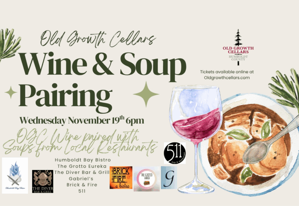 Join us as we pair 6 OGC wines perfectly with local restaurants such as Humboldt Bay Bistro, The Grotto, The Diver Bar & Grill, Gabriel’s, Brick & Fire Bistro, & 511